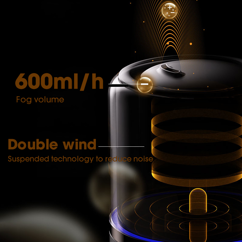 [Sleep Mode & Touch Screen] The humidifier has a 35dB silent sleep mode, which is perfect for night use and will not disturb your sleep. The top of the humidifier has a user-friendly touch screen and a remote control, making it easy for people of all ages to use. Its top filling hole is wide enough that you don't have to scrub any awkward corners. The cleaning process of the humidifier is very simple, and you can easily maintain its efficient operation, thanks to the suspended water pumping design, which more cleverly reduces noise.